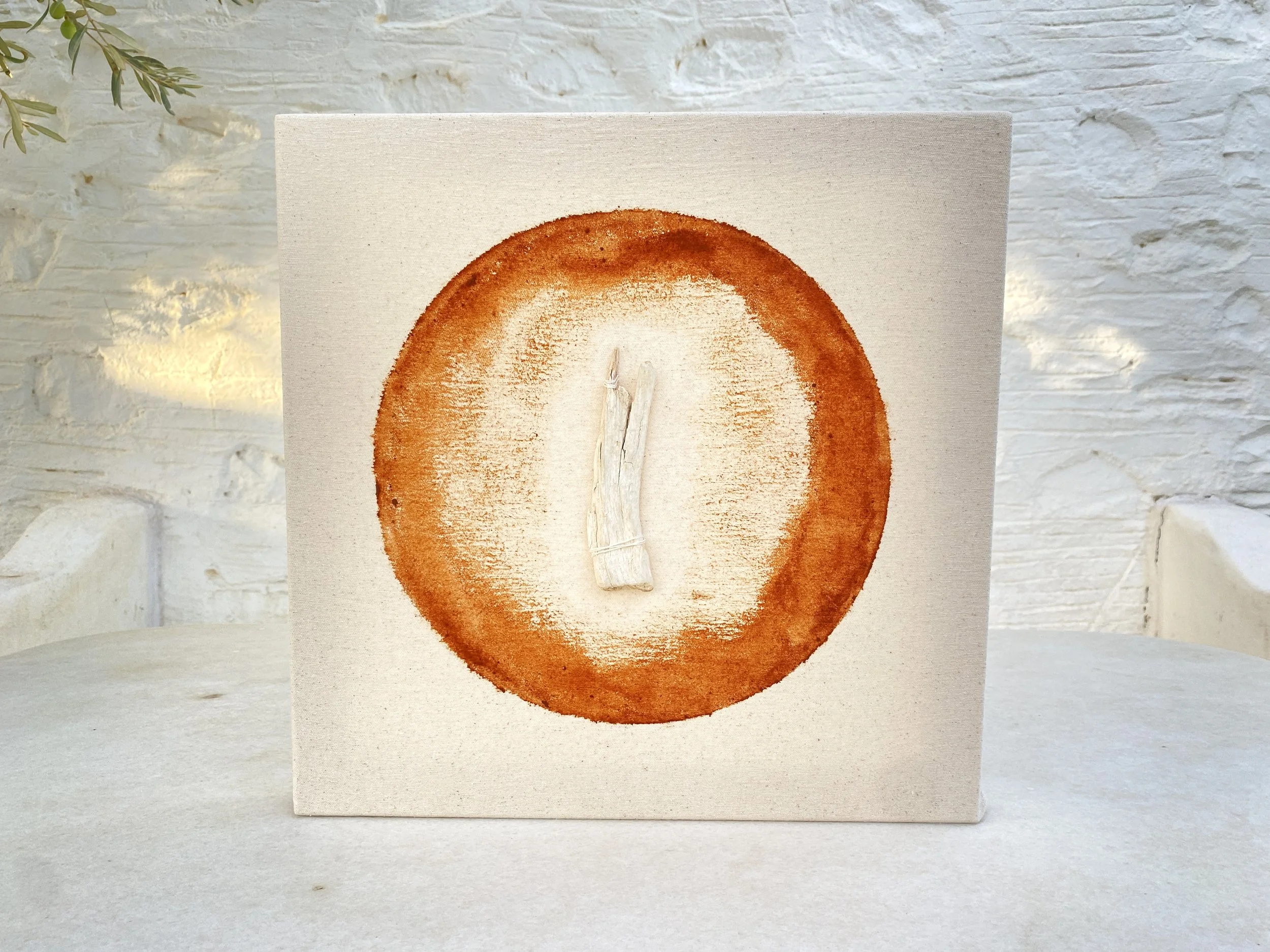 As an abstract artist and islander, I create minimal organic compositions using naturally sourced materials like driftwood, earthy pigments, and marble dust to embrace the purity of the Cycladic topos.