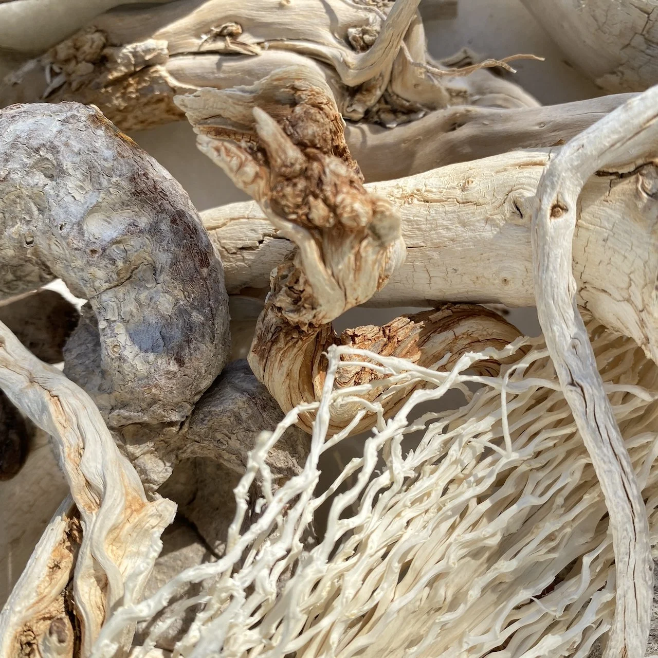 Driftwood comes in a variety of sizes and forms, from large, sculptural pieces to small, delicate fragments. After stormy weather, I comb the local beach, cleaning and selecting the most exceptional pieces to incorporate them into my work.